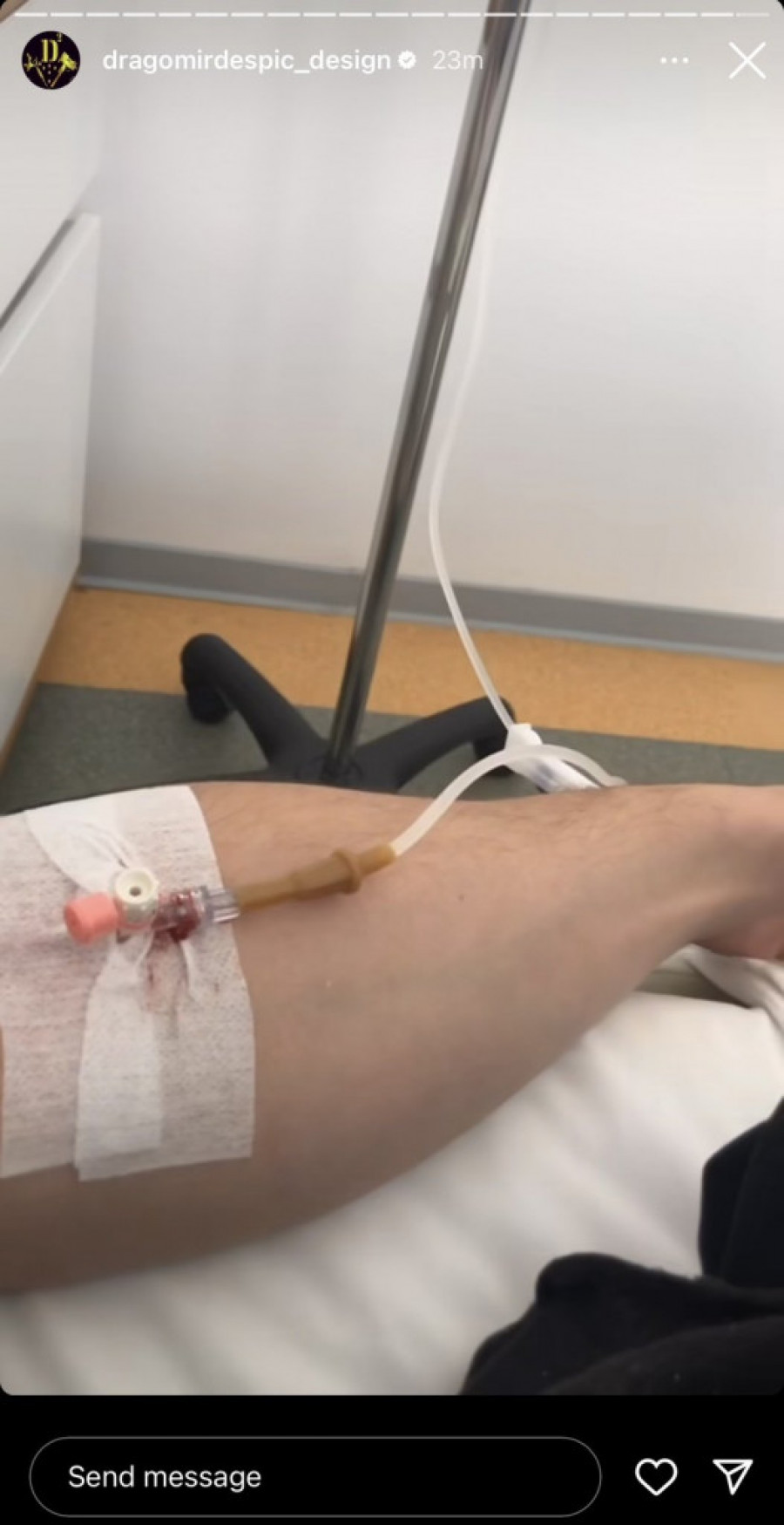 Izgleda da se njegovo stanje pogoršalo, pošto je popularni reper na svom profilu na Instagramu putem storija podelio slike iz bolničkog kreveta. Desingerica je priključ na inzuziju, a snimio je i svoju bolničku sobu, pa čak i medisinsku sestru koja se brinula o njegovom stanju.