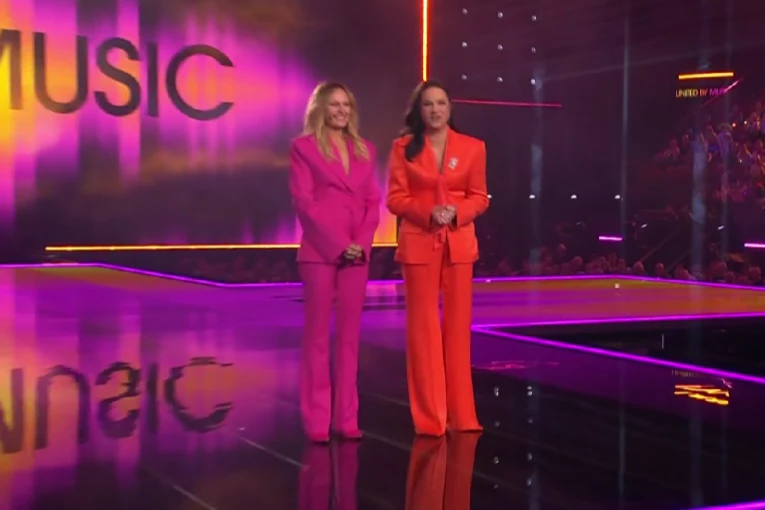 Narandžasto i roze odelo u kojem su se pojavile voditeljke privuklo je pažnju svojom originalnošću, a posebno je zanimljivo da je ovo već treći put da Petra Mede vodi ovu prestižnu manifestaciju.