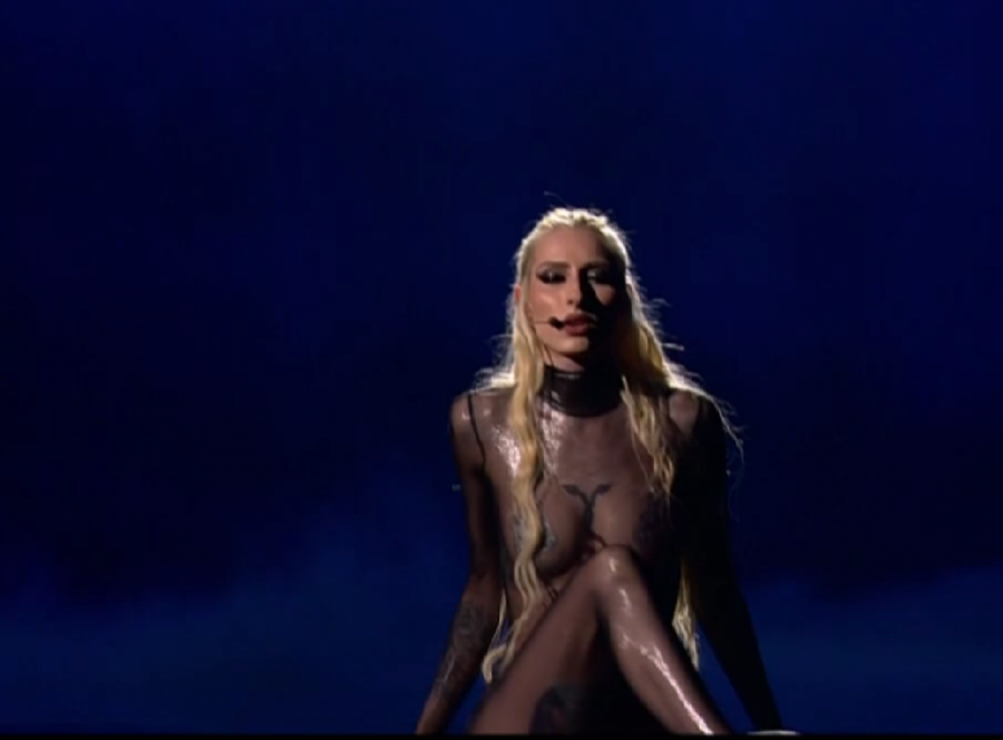 BLUD NA EVROVIZIJI ZAPANJIO CEO SVET: Pevačica se UVIJALA u providnom kostimu, a na nju naskočili GOLI MUŠKARCI (FOTO)