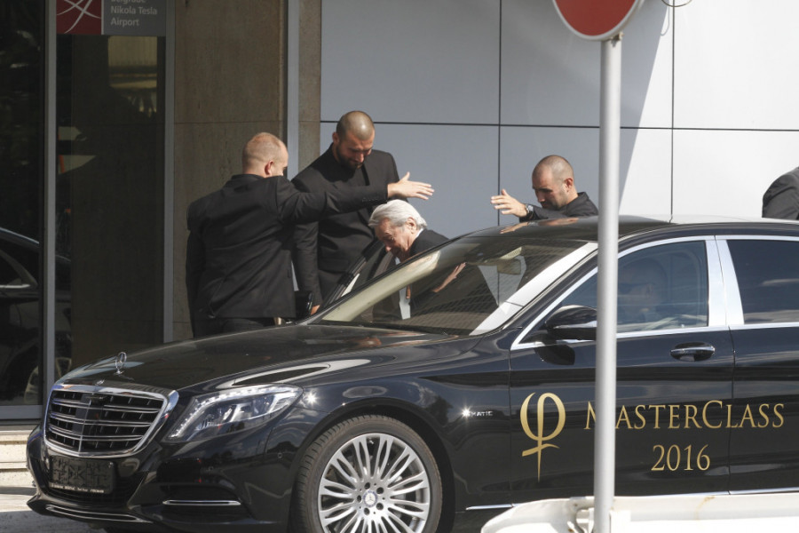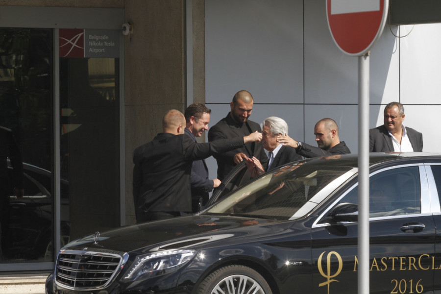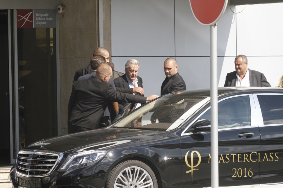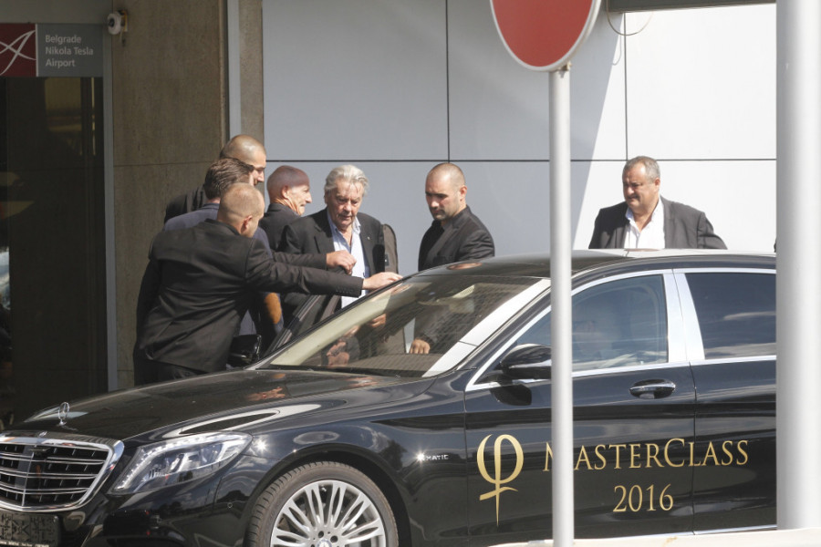 Alen Delon je držao petominutni pozdravni govor, a fotoreporter Srpskog telegrafa Vladimir Lukić uslikao ga je na aerodromu "Nikola Tesla" nakon sletanja iz Francuske. Delon je bio u pratnji obezbeđenja i odmah je ušao u auto. Jedan čovek mu je nosio stvari i nekoliko odela.