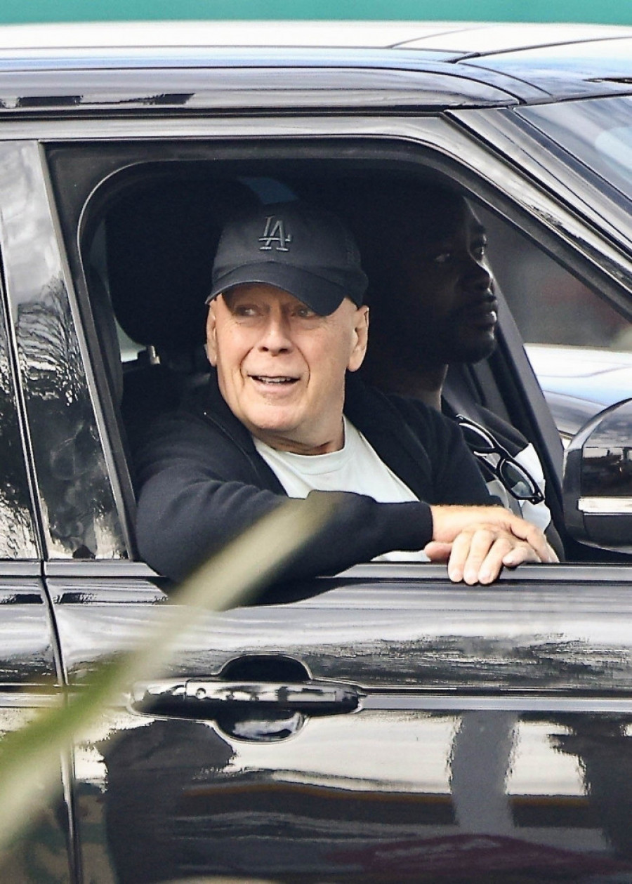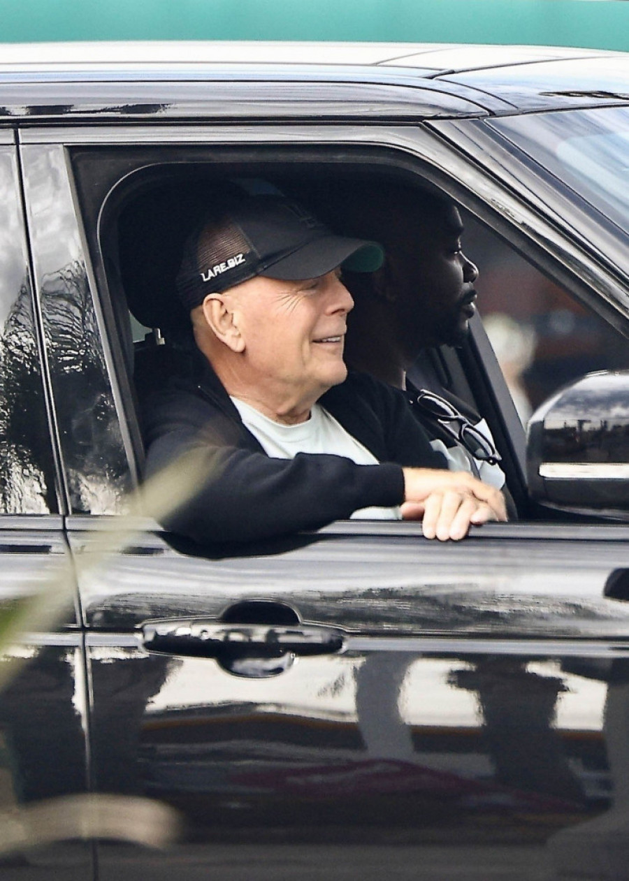 Glumac Brus Vilis je bio nasmejan tokom retkog javljanja tokom vožnje u nedelju u Los Anđelesu, dok nastavlja borbu sa afazijom i demencijom.