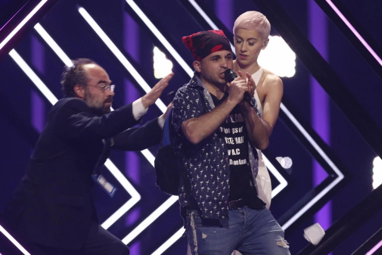 (VIDEO) ULETEO NA BINU, OTEO MIKROFON I UZVIKNUO "NACISTI": Neviđen skandal na Evroviziji