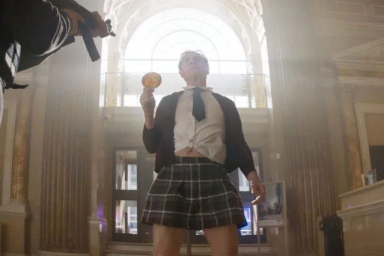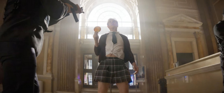 Štapić od lizalice postaje smrtonosno oružje dok on likvidira protivnike. Potpuno u stilu originalnog "Golog pištolja".