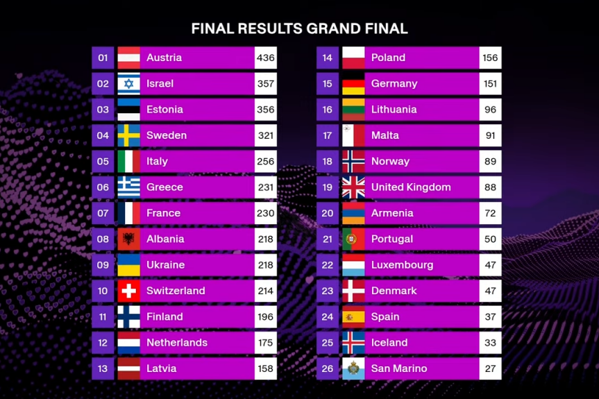 Austrija je trijumfovala na Evroviziji 2025, koja je održana u Bazelu, a njen predstavnik, mladi muzičar poznat kao JJ, od početka je bio jedan od glavnih favorita za pobedu. Austrijski predstavnik osvojio je ukupno 178 poena, čime je svojoj zemlji obezbedio prestižni trofej i još jednu evrovizijsku pobedu.