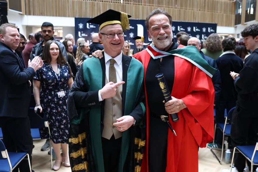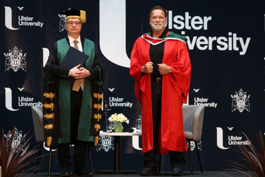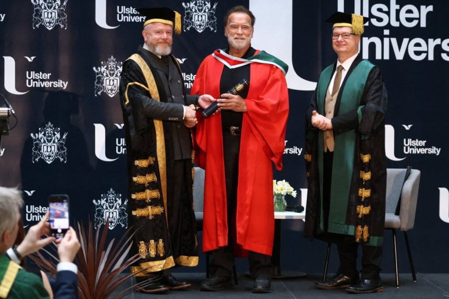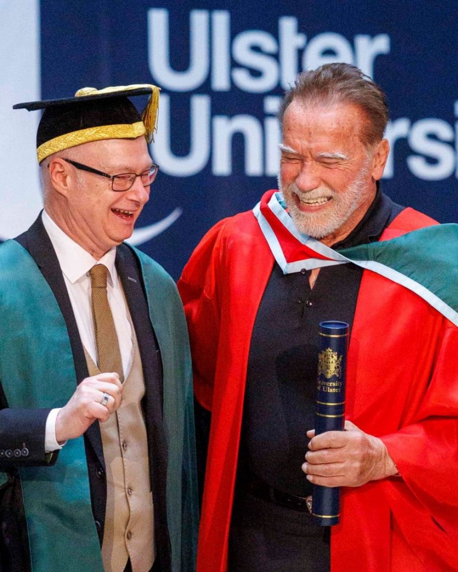 Arnold Švarcneger, holivudski glumac i bivši guverner Kalifornije, primio je počasni doktorat na Alster univerzitetu u Belfastu. On se tom prilikom prisetio svog prvog dolaska u grad pre 60 godina, kada je kao 19-godišnji bodibilder učestvovao na takmičenju 1966. godine, pre svog glumačkog debija u filmu "Herkul u Njujorku" iz 1970. godine, prenosi Skaj njuz.