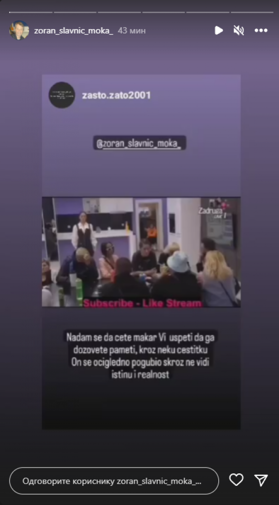 - Nadam se da ćete makar VI uspeti da ga dozovete pameti, kroz neku čestitku. On se očigledno pogubio, skroz ne vidi istinu i realnost - poručili su fanovi Moki putem Instagrama.